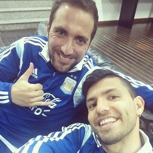 Нападающие сборной Аргентины Серхио Агуэро (справа) и Гонсало Игуаин: