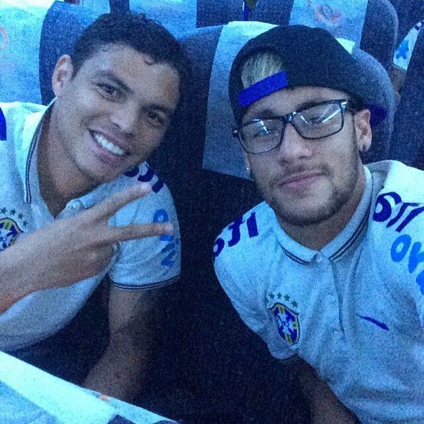 Капитан сборной Бразилии Тиагу Силва (слева) и нападающий Неймар: