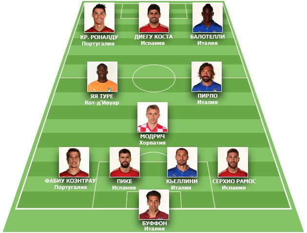 ЗАПАСНЫЕ: Касильяс, Пепе, Ракитич, Хонда, Хави, Иньеста, Джеррард, Лэмпард, Дрогба, Старридж, Руни, Джеко, Это'О.