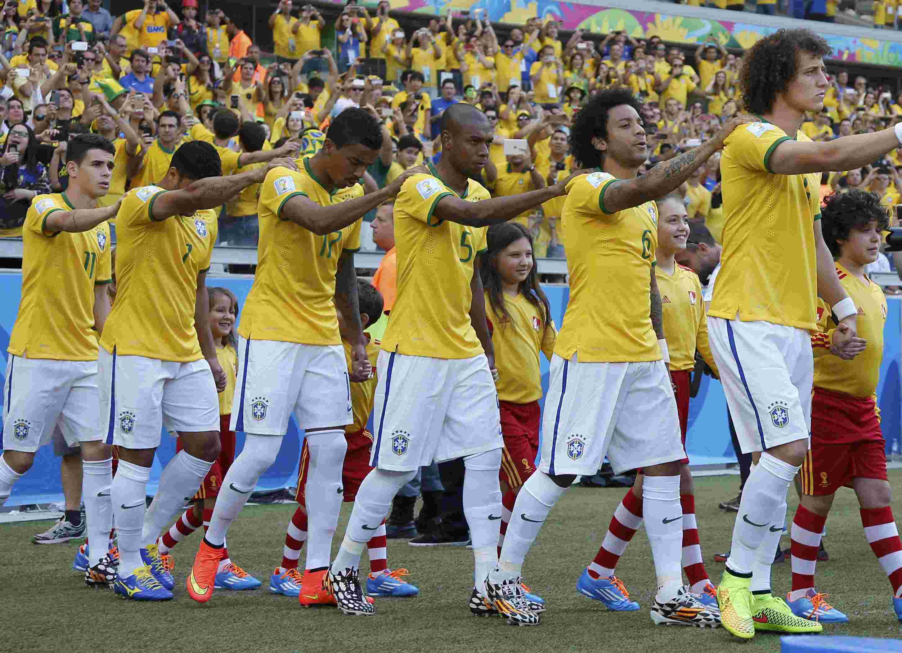 БРАЗИЛИЯ: 12. Жулиу Сезар – 2. Даниэл Алвес, 3. Тиагу Силва (к), 4. Давид Луиз, 6. Марселу – 5. Фернандинью (16. Рамирес, 72), 11. Оскар (19. Виллиан, 106), 17. Луиз Густаву – 7. Халк, 9. Фред (21. Жо, 64), 10. Неймар.