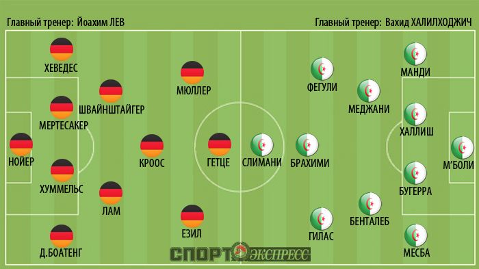 2:0 Немцы выше на голову во всех компонентах. Они могут забить Алжиру и больше, но, считаю, проведя два мяча, не станут рисковать, начнут играть экономно, держа в уме четвертьфинал.