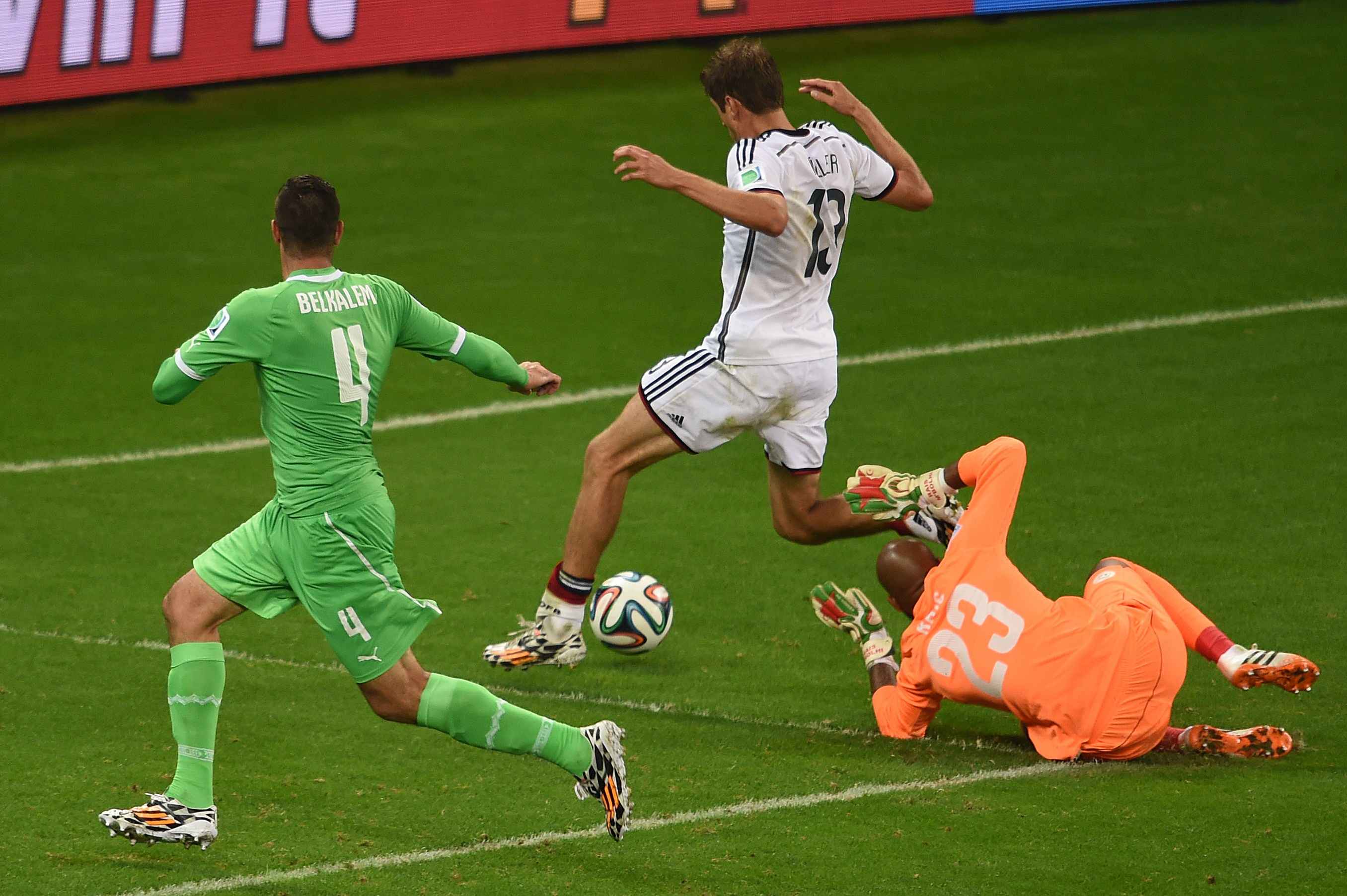 Во второй половине подопечные Лева с заменой Гетце на Шюррле задвигались шустрее, забыв о своем предматчевом спокойствии и даже вальяжности. Потеряв из-за мышечной травмы Мустафи (он на турнире больше не сыграет), бундестренер отрядил Лама на правый фланг – и тот своими рывками добавил огня. Искал момент и партнеров Мюллер, только М'Боли разбушевался и пропускать отказывался даже в верных казалось бы эпизодах. Сам же "скрытый снайпер" при одном из штрафных развеселил публику, когда при разбеге завалился на газон. В овертайм фаворит против подуставшего соперника влез безо всяких шуток, но как только он начался – Мюллер взорвал ситуацию на левом фланге, а Шюрлле эффектным ударом пяткой все-таки пробил алжирскую стену. Он же под занавес второго дополнительного тайма на пару с Езилом поставил точку, пусть формально последнее слово осталось за алжирцами, у которых отличился Джабу.