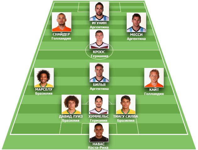 В символическую сборную 1/4 финала чемпионата мира по версии "СЭ" вошли десять полуфиналистов и непобежденный вратарь из Коста-Рики