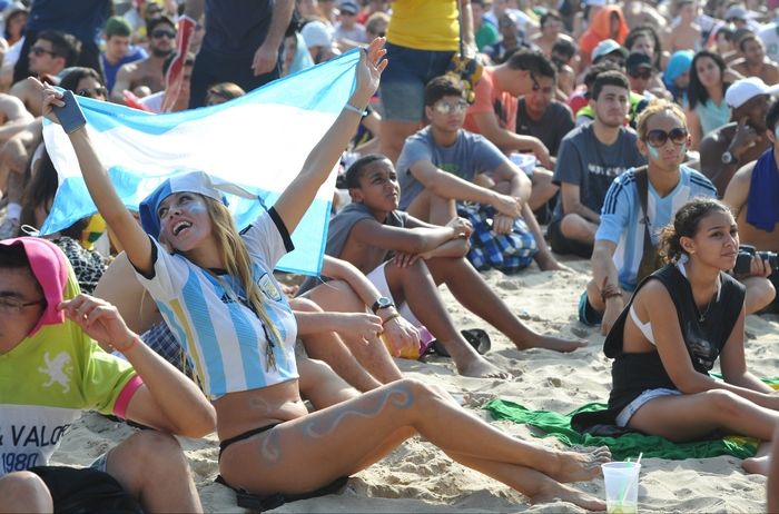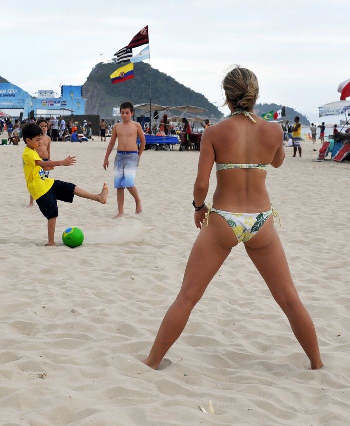 Людей здесь действительно немыслимое количество – впрочем, кто сказал, что это плохо? Среди толпы футбольных болельщиков можно встретить и во всех смыслах выдающихся персонажей. А еще в Рио не принято скрывать свою красоту – вот девушки и выбирают для игры в футбол на Копакабане наряды, закрывающие только самый минимум тела. И слава богу.