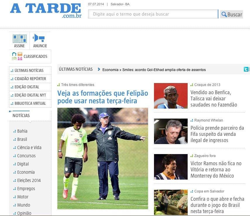 A Tarde (Бразилия): "СКОЛАРИ ГОТОВИТ НЕСКОЛЬКО ТАКТИЧЕСКИХ СХЕМ"