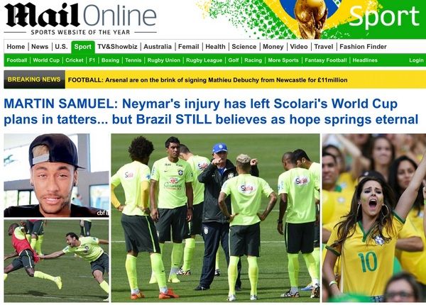 Daily Mail (Великобритания): "ТРАВМА НЕЙМАРА СПУТАЛА ПЛАНЫ СКОЛАРИ,