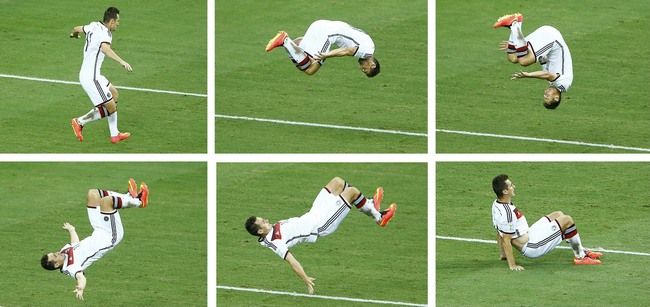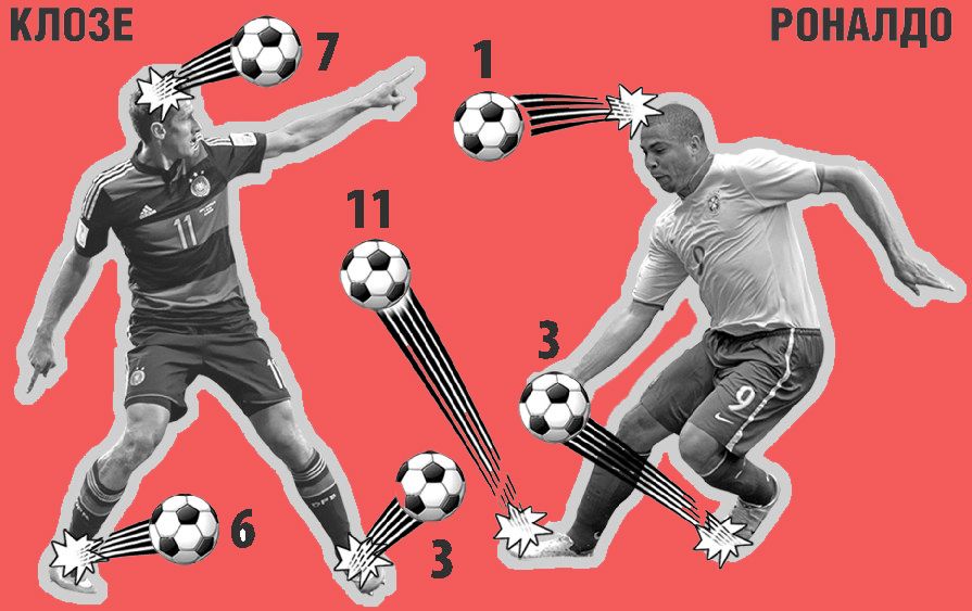 На остальных местах – профи высочайшего класса, но Месси и Неймаров среди них нет. И самым слабым звеном, чисто по имени, выглядит 36-летний Клозе. Как же так? Выходит, и в Германии вымерли нападающие, раз впереди играет глубокий старик? Но почему тогда бундесманншафт забивает так много мячей? А Клозе, который при сухой оценке его нынешних возможностей, абстрагируясь от командных условий, вряд ли радикально превосходит Фреда, вдруг становится тем человеком, кто отправил соперника в нокдаун и – процитируют популярный мем – превзошел рекорд бразильца Роналдо, забив Бразилии в Бразилии.