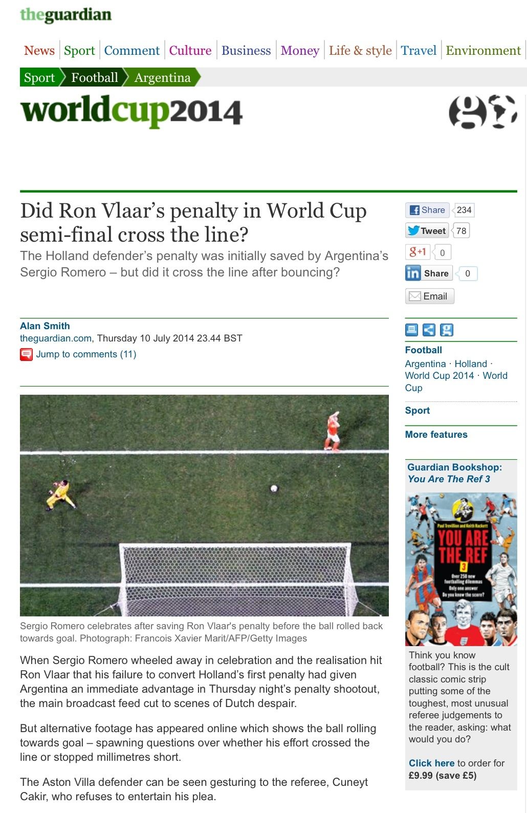 В полуфинальном матче между Голландией и Аргентиной вратарь "небесно-голубых" Серхио Ромеро отразил пенальти в исполнении Рона Флара. Но, возможно, мяч после отскока от рук вратаря все-таки пересек линию ворот.