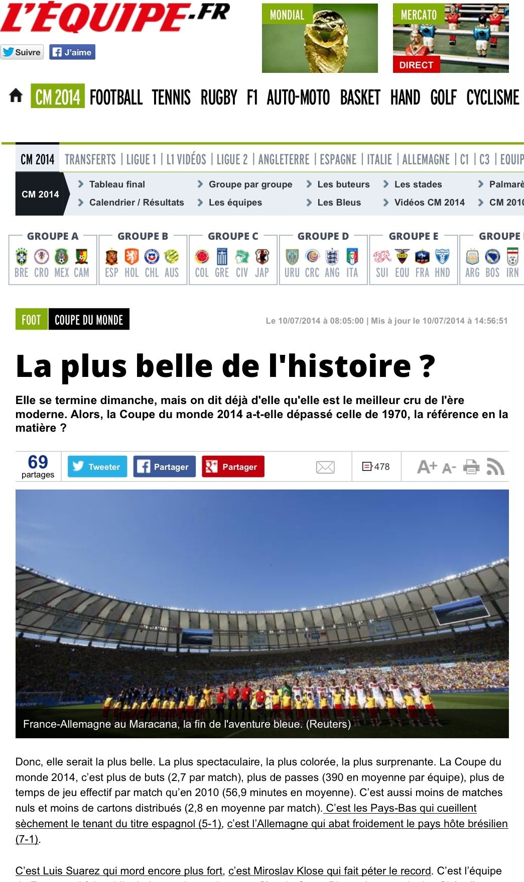 Луис Суарес кусается, Мирослав Клозе бьет рекорды. Франция забывает про автобус, но не попадает в полуфинал. Коста-Рика удивляет весь мир. Тренер голландцев меняет вратаря перед серией пенальти. Неймар плачет – Месси смеется. Неужели, и правда, мы – свидетели самого красивого чемпионата мира в истории?