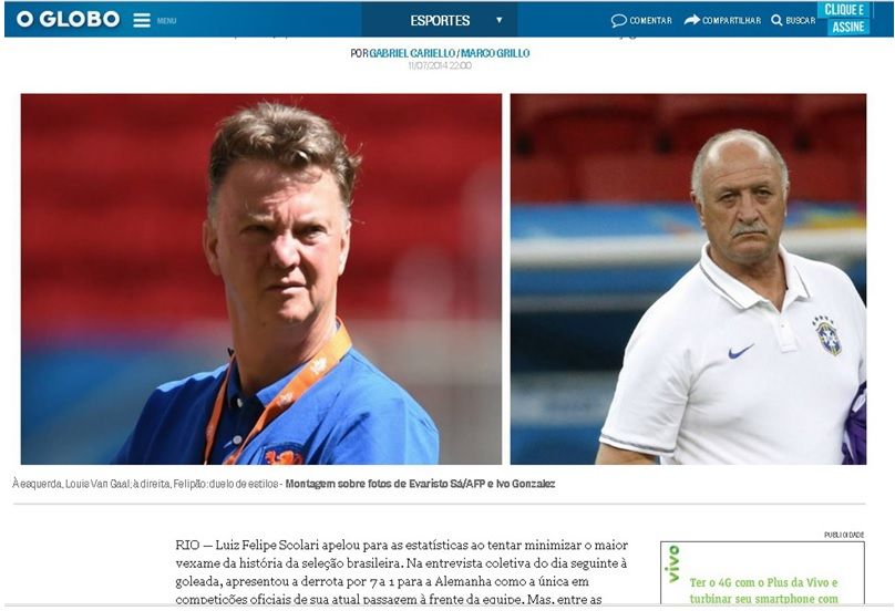 O Globo (Бразилия): "В ОТЛИЧИЕ ОТ СКОЛАРИ, ВАН ГАЛА ЦЕНЯТ"