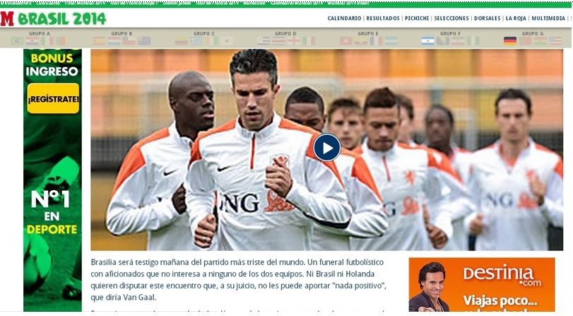 - Завтра Бразилия станет свидетелем печального шоу. Похоронная игра, в которой не заинтересован никто из двух команд. Ни Бразилия, ни Голландия не хотели играть в этой встрече. Как сказал ван Гал, она не принесет ничего положительного.