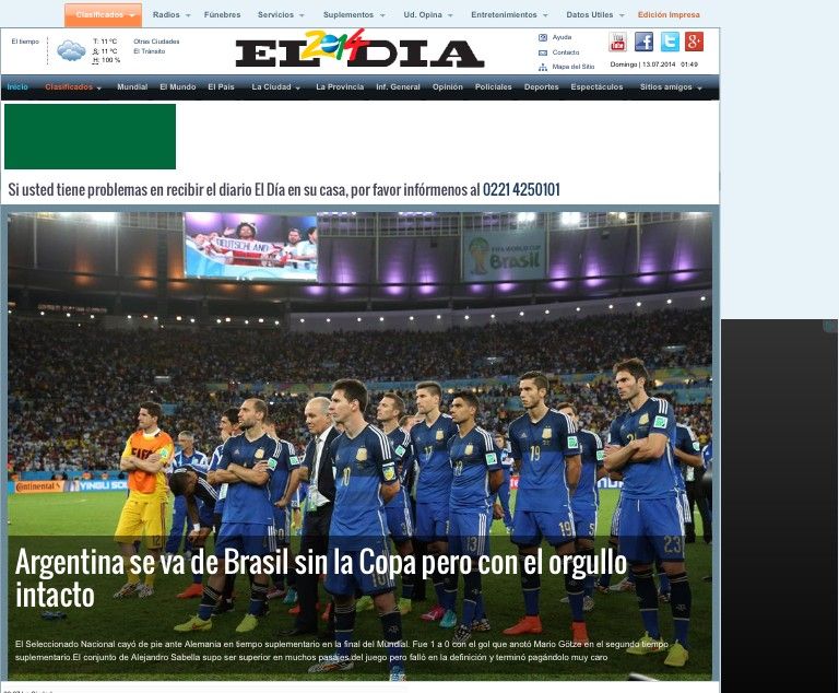 El Dia: АРГЕНТИНА ПОКИДАЕТ БРАЗИЛИЮ БЕЗ КУБКА, НО С ГОРДОСТЬЮ