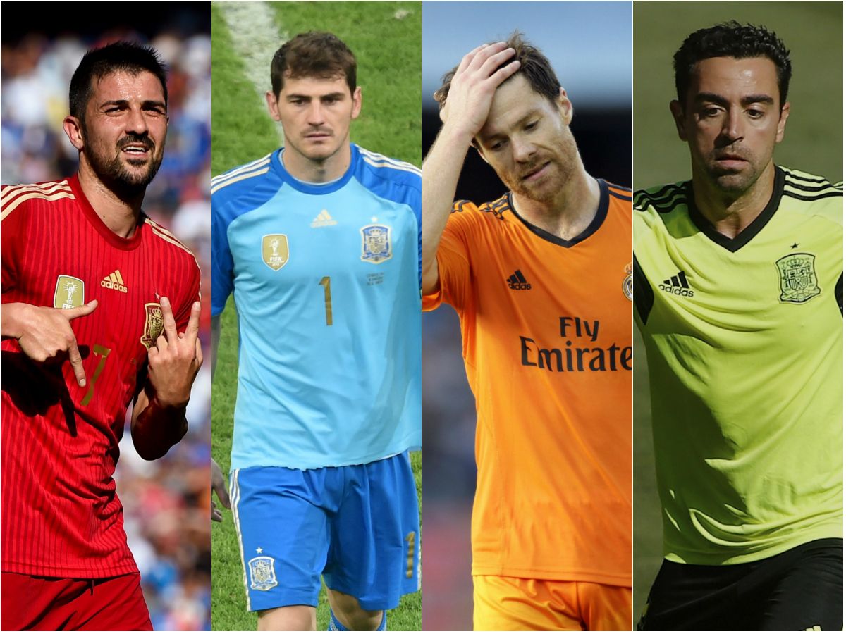 ИСПАНИЯ: Давид ВИЛЬЯ (36), Икер КАСИЛЬЯС (37), ХАБИ АЛОНСО (36), ХАВИ (38)