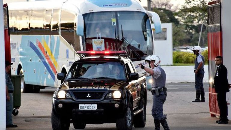 Сборная России в окружении полиции