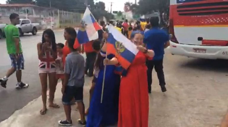 Дети русских эмигрантов в Бразилии толпой идут на сегодняшний матч ЧМ-2014 подопечных Фабио Капелло с Кореей, передает спецкор "СЭ" Дмитрий СИМОНОВ. Одеты болельщики в русские народные костюмы.