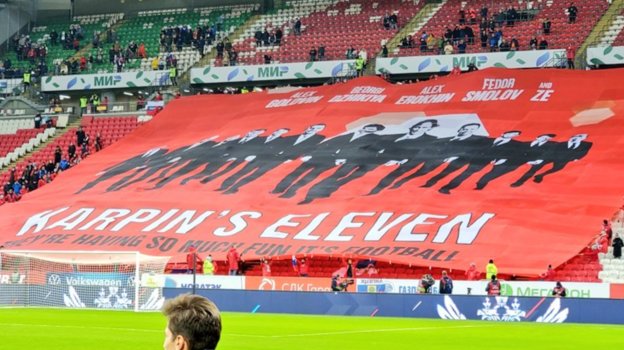 «Одиннадцать друзей Карпина». Баннер российских болельщиков на матче против Словакии