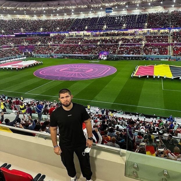 Российский боец UFC Хабиб Нурмагомедов побывал на матче между сборными Бельгии и Канады на ЧМ-2022 в Катаре. В своих соцсетях он показал фото с трибун.