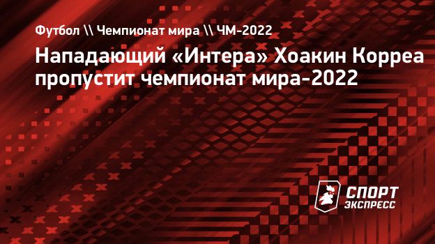 Сборная Аргентины в Twitter объявила, что нападающий «Интера» Хоакин Корреа не сыграет на чемпионате мира-2022. Он был исключен из заявки из-за травмы.