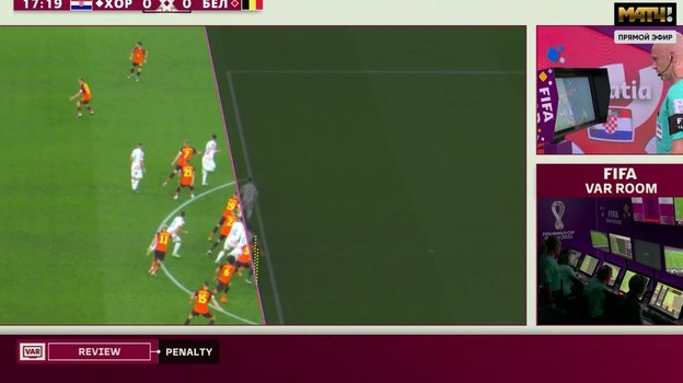 Система полуавтоматического определения офсайда (САОТ) показала, что один из игроков сборной Хорватии оказался в положении «вне игры». В данном случае только этого результата было недостаточно — потребовалось, чтобы сам Тэйлор посмотрел повторы, оценил действия футболистов и вынес окончательное решение. Что в итоге и было сделано.