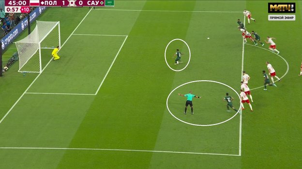 В том моменте при выполнении аравийцами пенальти до удара в штрафную площадь поляков вбежал Мухаммед Аль-Брейк.