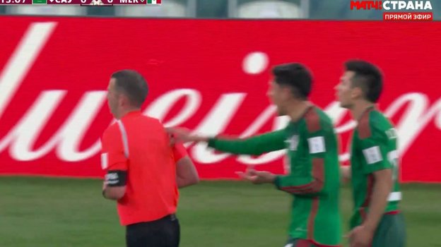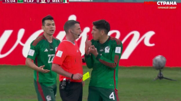 В том моменте мексиканец долго спорил с судьей, потом Оливер вынес ему предупреждение и развернулся, чтобы уйти.