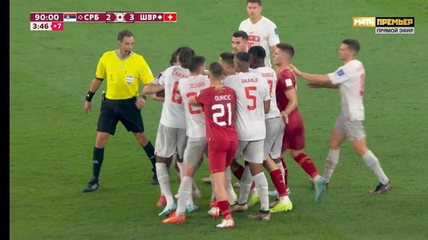 Футболисты Сербии и Швейцарии устроили потасовку в конце матча третьего тура групповой стадии ЧМ-2022. Счет в игре 3:2 в пользу швейцарцев.