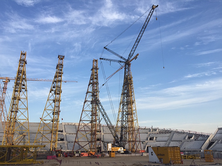 Реконструкция "Аль-Халифа Интернэшнл Стэдиум" идет 24 часа в сутки. Основные работы летом стараются выполнять с часу ночи до 11.30 утра. Смены при этом периодически меняют местами. Но вот беда – пакистанским, индийским и арабским рабочим летом здесь жарко, а в январе-феврале при +13 ночью и +20 днем – холодно.