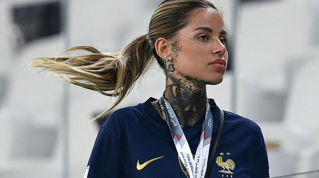 Среди фанаток сборной Франции на чемпионате мира выделяется экстравагантная супруга полузащитника «Трехцветных» Тео Эрнандеса. Невозможно не обратить внимания на многочисленные тату Зое Кристофоле.