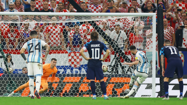 Казалось, «Альбиселеста» перенесет эти эмоции, искры и злость на полуфинал. Но в стартовые полчаса сложилось полное ощущение: Хорватия способна как минимум дойти до овертайма. В Катаре команда Скалони еще не сталкивалась с таким сопротивлением и впервые за весь турнир уступила в контроле мяча.