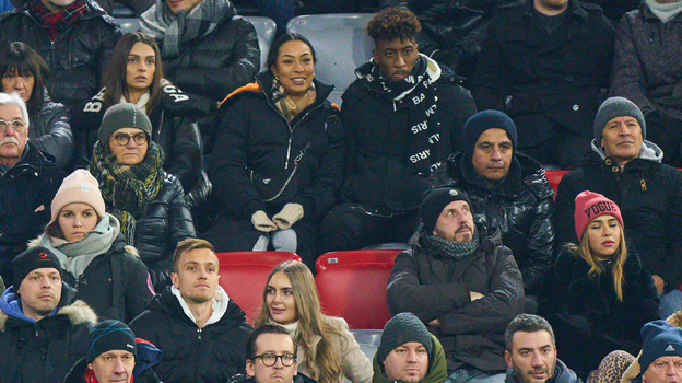 В Катаре Сабрина сидит на трибуне в футболке Комана с подругами и женами других футболистов сборной Франции.
