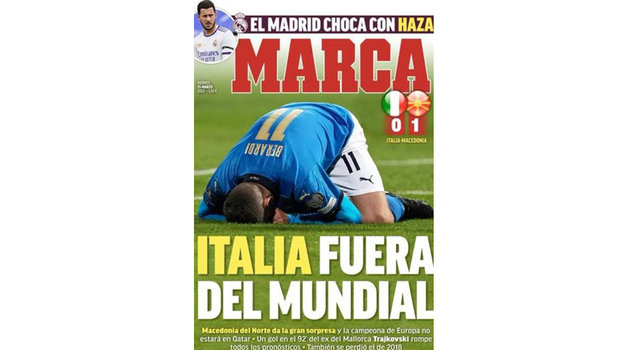 Испанская Marca поставила на первую страницу фото Доменико Берарди, стоящего на коленях. Издание отмечает, что Северная Македония «разбила все прогнозы» своим голом в дополнительное время.