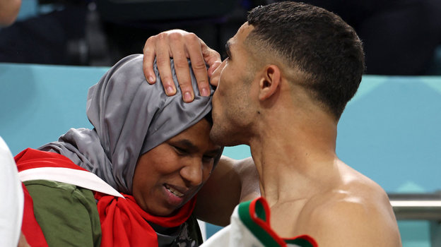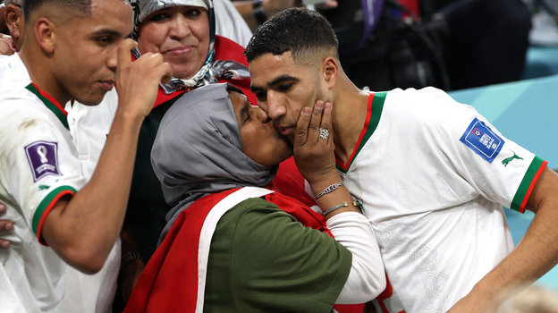 Победа над сборной Бельгии в группе вдохновила еще одного полузащитника сборной Марокко Ашрафа Хакими настолько, что он сразу же побежал к своей маме. После игры футболист выложил эти милые кадры на своих страничках в соцсетях и поблагодарил маму за любовь и помощь. Подобные сцены и снимки сопровождали весь путь Марокко до полуфинала.