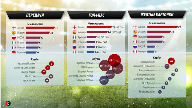 В инфографике "СЭ" – подробная информация о том, как футболисты ведущих европейских лиг проявили себя на турнире в России. Фото "СЭ"