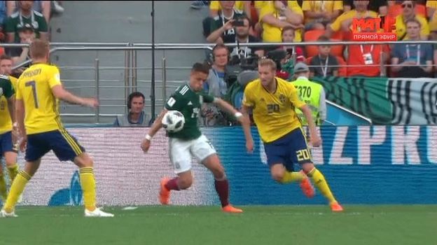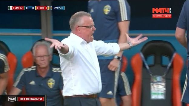 Шведы требовали 11-метровый удар - рефери собирался продолжить игру. Но вмешался видеоарбитр - еще один аргентинец Мауро Вильяно. Питана посмотрел видеозапись и оставил свое решение в силе.