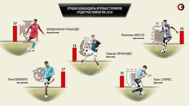 Лучшие бомбардиры крупных турниров среди участников ЧМ-2018. Фото "СЭ"