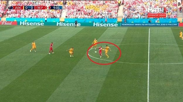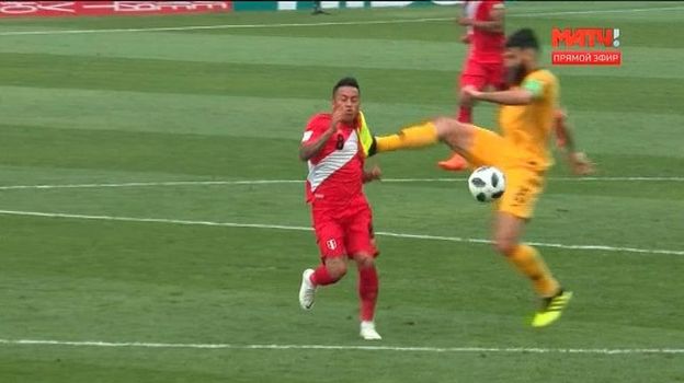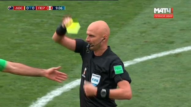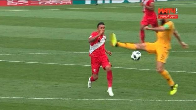 На 10-й минуте матча чемпионата мира Австралия - Перу арбитр Сергей Карасев совершил серьезную ошибку, не удалив полузащитника австралийцев Единака.