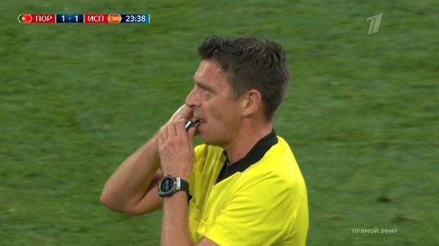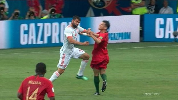 На 24-й минуте матча чемпионата мира-2018 Португалия – Испания итальянский арбитр Джанлука Рокки засчитал гол в ворота португальской команды, вызвав споры со стороны ее игроков. В том эпизоде Диегу Коста выиграл единоборство у Пепе, сфолив на сопернике. Форвард испанцев, выпрыгнув на мяч, ударил защитника рукой.