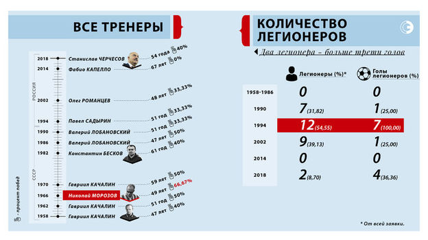 "СЭ" представляет сравнительную статистику выступления сборных СССР/России на мировых первенствах.
