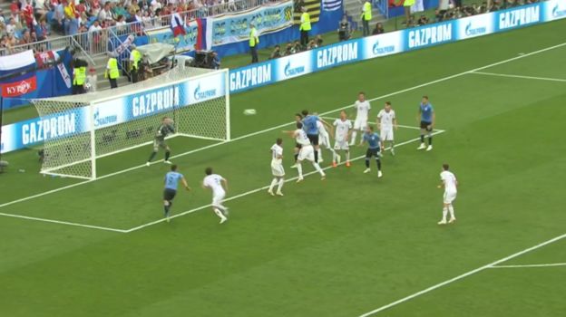 Разбираем, как форвард сборной Уругвая Эдинсон Кавани забил третий мяч в ворота сборной России в матче чемпионата мира по футболу-2018 в Самаре.