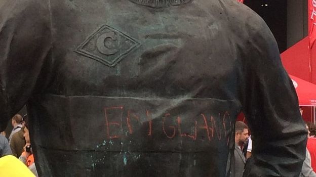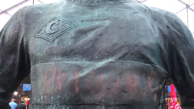 На памятнике легендарному футболисту Федору Черенкову у стадиона "Спартак" в преддверии матча 1/8 финала чемпионата мира Колумбия - Англия неизвестные написали "England" (Англия).