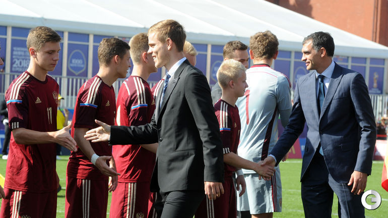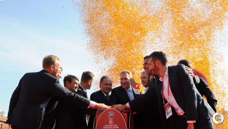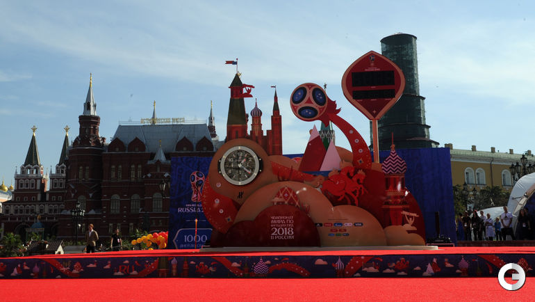 Сегодня на Манежной площади в Москве состоялась церемония запуска часов обратного отсчета времени до старта чемпионата мира 2018 года. Фото - Никита УСПЕНСКИЙ, "СЭ".