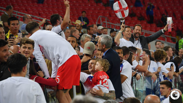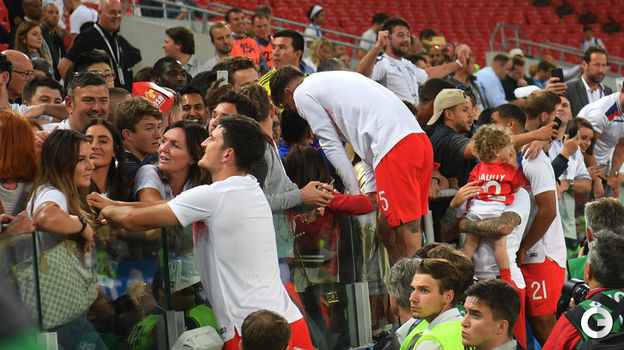 После победы над Колумбией в матче 1/8 финала чемпионата мира футболисты сборной Англии подошли к трибунам, чтобы поблагодарить своих жен и подруг за поддержку.