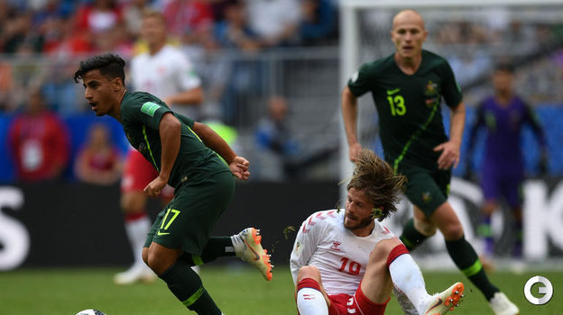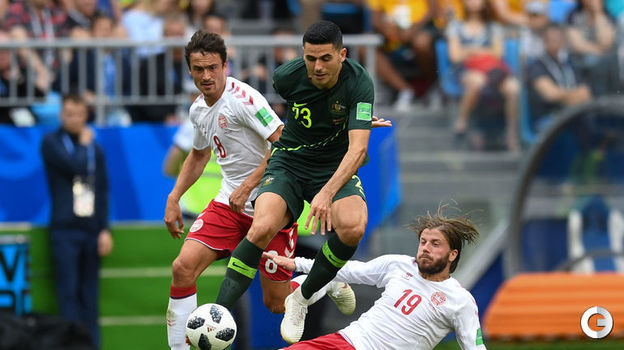 Сборные Дании и Австралии (1:1) сыграли вничью в матче чемпионата мира-2018 в Самаре. На гол Кристиана Эриксена австралийцы ответили точным ударом Миле Единака с пенальти, назначенного после видеопросмотра.