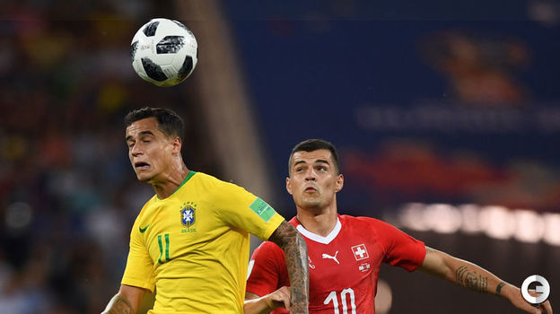 Сборная Бразилии сыграла вничью со сборной Швейцарии (1:1) в матче чемпионата мира-2018 в Ростове-на-Дону - 1:1. Счет открыл Филиппе Коутинью, который поразил ворота благодаря точному дальнему удару на 20-й минуте. Бывший полузащитник ЦСКА Стивен Цубер на 50-й минуте ударом головой восстановил равновесие.