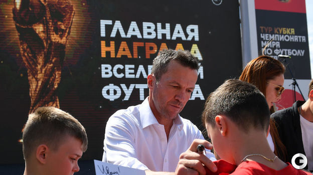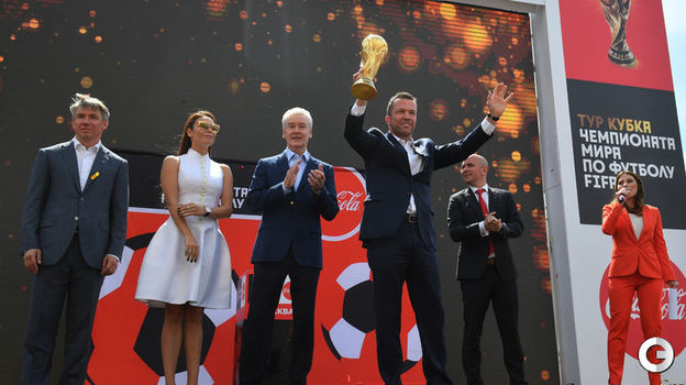 В воскресенье, 3 июня, в Москве на Манежной площади прошла церемония приветствия кубка чемпионата мира. С 4 по 7 июня главный трофей мирового футбола будет выставлен в Парке Горького, на Пушкинской набережной – желающие получат возможность сфотографироваться с ним.