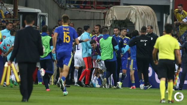 Встреча отборочного турнира чемпионата мира-2018 между сборными Боснии и Герцеговины и Греции (0:0) закончилась дракой с участием игроков и тренеров обеих команд. После стычки игроков "Ромы" Эдина Джеко и Костаса Маноласа в конфликт вступили и остальные члены команд.