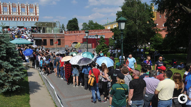Главная площадь страны снова открыта после Дня России и выходных и продолжает привлекать к себе болельщиков из разных стран мира. Большинство за болельщиками из Перу, Аргентины, Колумбии. Если есть возможность увидеть своими глазами - приходите, не пожалеете. Карнавал в самом разгаре. Только запаситесь водой в жаркие дни.