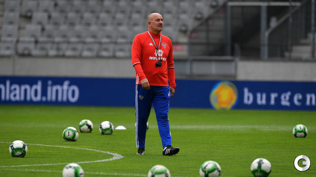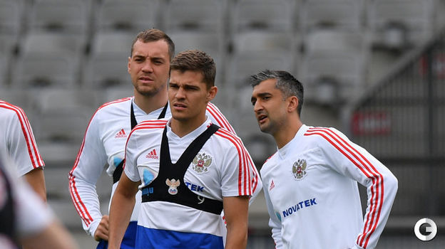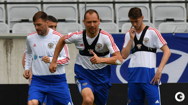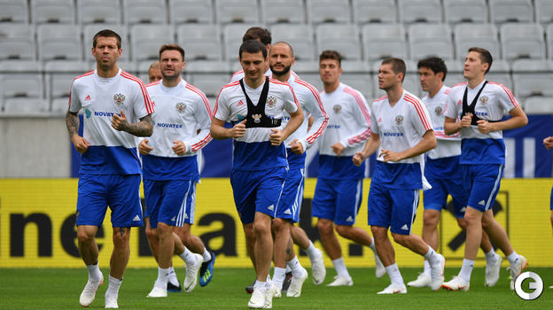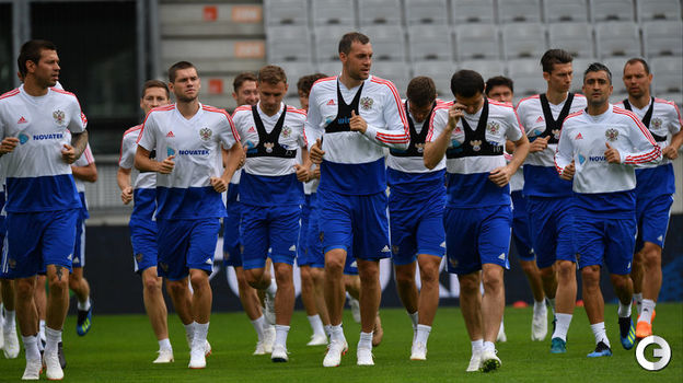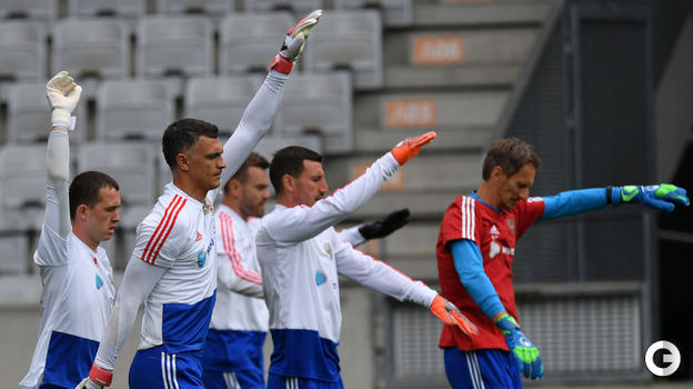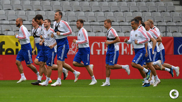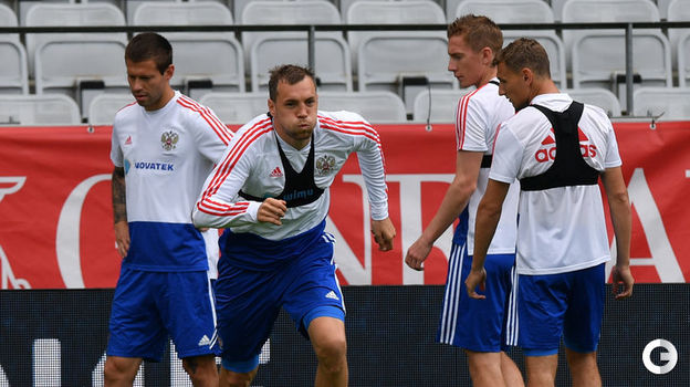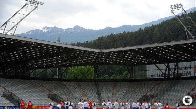 Сборная России провела тренировку на стадионе "Тиволи" в Инсбруке, где завтра состоится ее контрольный матч в рамках подготовки к чемпионату мира с национальной командой Австрии.