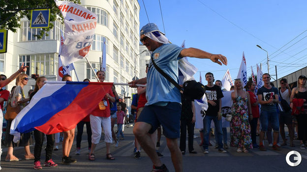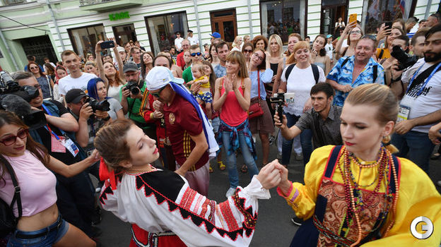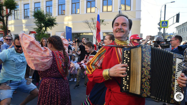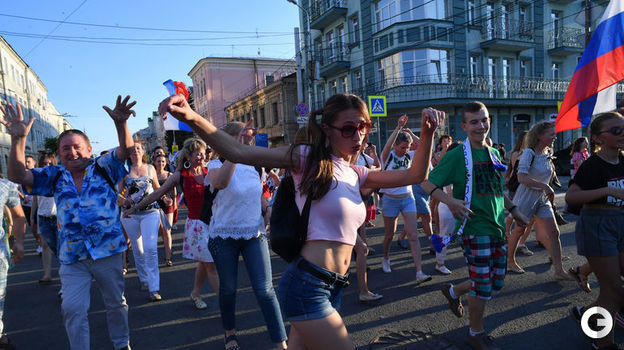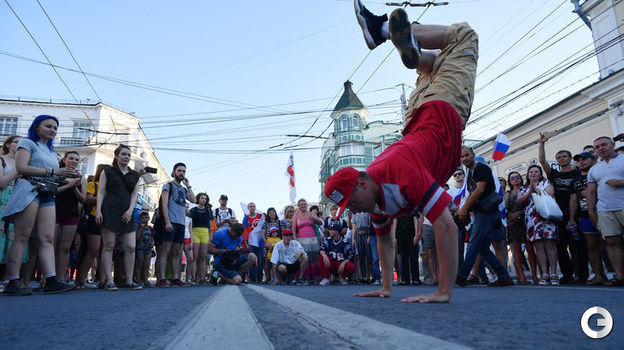 Праздник в Самаре! Сборная России завтра проводит решающий матч группового этапа ЧМ-2018 против Уругвая. Горожане и гости вместе с многочисленными болельщиками вышли на центральную улицу поддержать команду Станислава Черчесова!