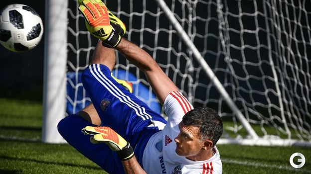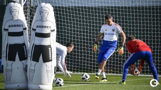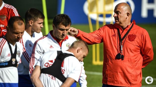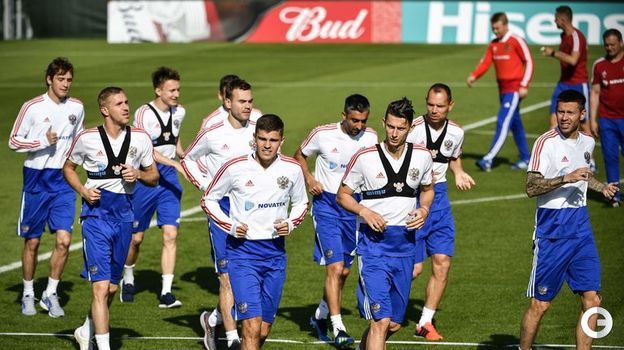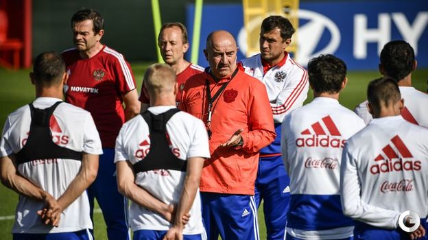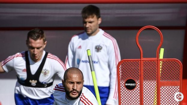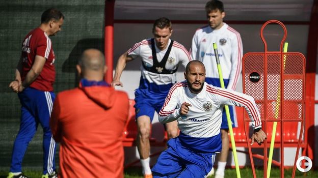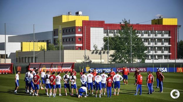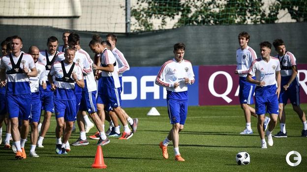 Сборная России провела тренировку на базе в Новогорске. Вместе со всей командой на поле вышел полузащитник Алан Дзагоев, досрочно завершивший стартовый матч чемпионата мира против Саудовской Аравии (5:0) из-за повреждения. Сначала игроки выслушали главного тренера команды Станислава Черчесова. После этого Дзагоев в сопровождении врача сборной Эдуарда Безуглова покинул поле. Остальные приступили к беговой работе.